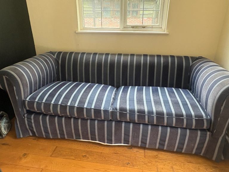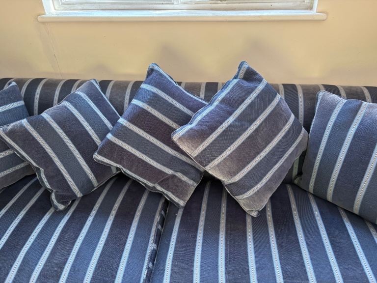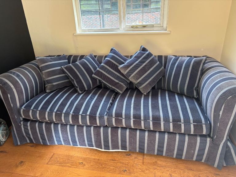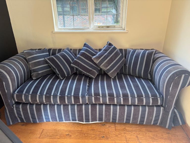 Posting for 9+ yearsHigh-End Heritage Sofa | Blue & White Stripe | Loose Cover Style Classic British Luxury Sofa