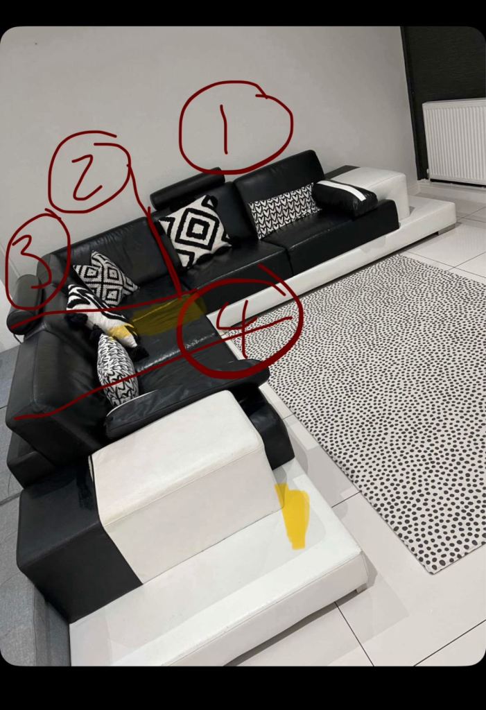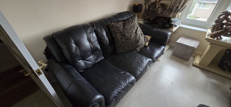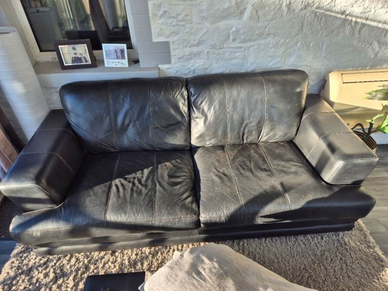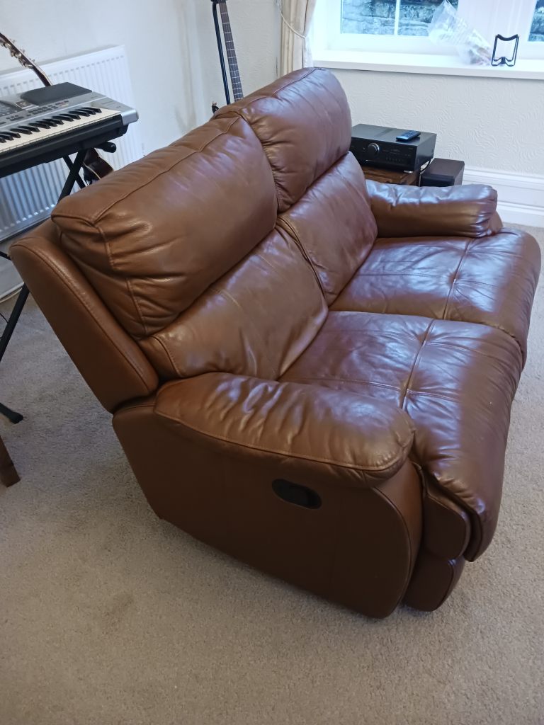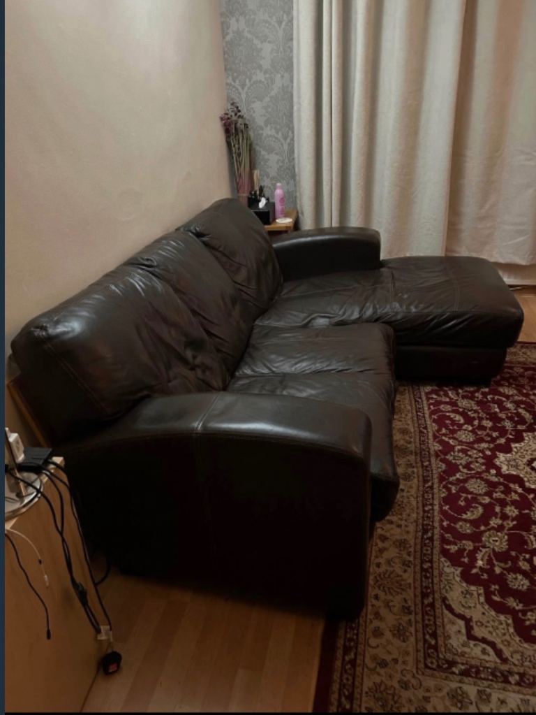 BROWN LEATHER SHAPE SOFA (DELIVERY AVAILABLE)