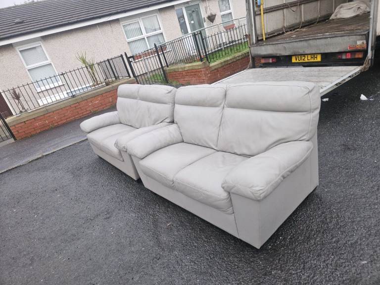 This beautiful 2,2 grey leather sofa set is in great condition and can be delivered in Belfast for no extra cost