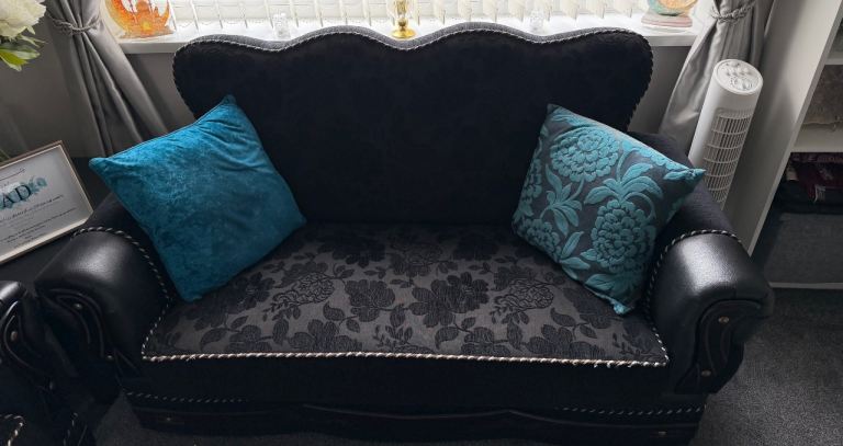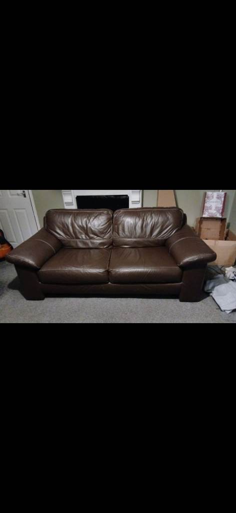 Posting for under a month2 & 3 seater tan leather sofas