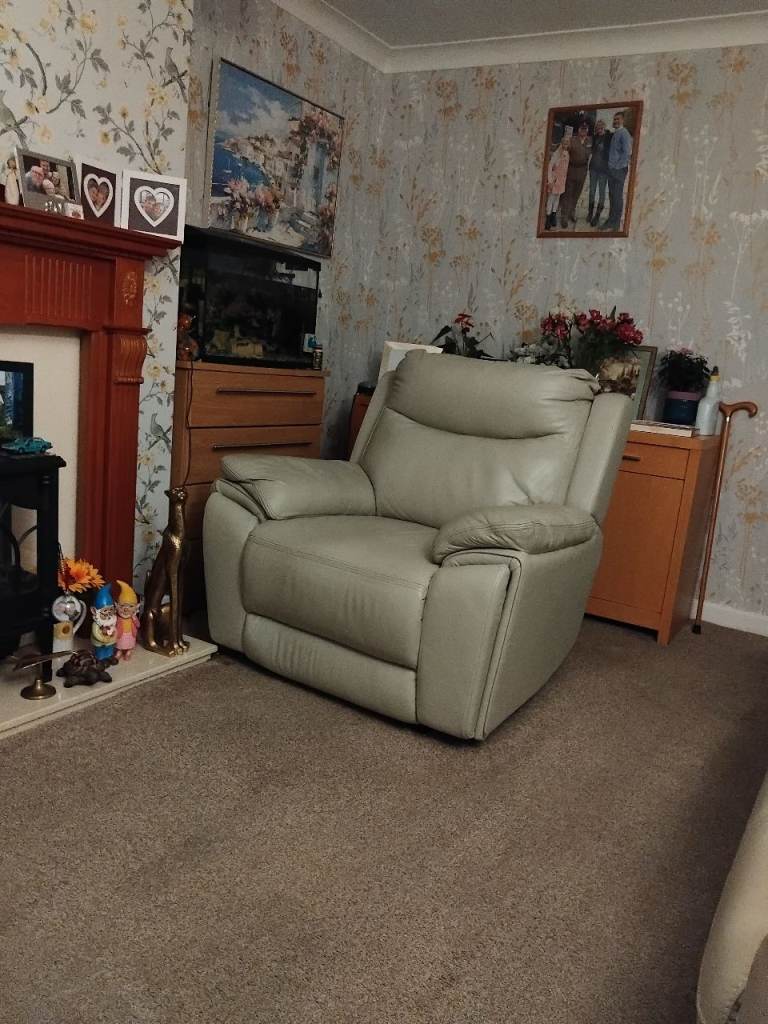 CHAIRS ARE IN GOOD CONDITION, HAVE RECLINING MODE, ARMS PULL OPEN TO PLACE CUPS OR T V REMOTES IN, ARE ALMOST 3 YEARS OLD. THEY HAVE BEEN LOOKED AFTER BUYER MUST TRANSPORT THE ITEMS, BARGAIN PRICE AS SPACE NEEDED.