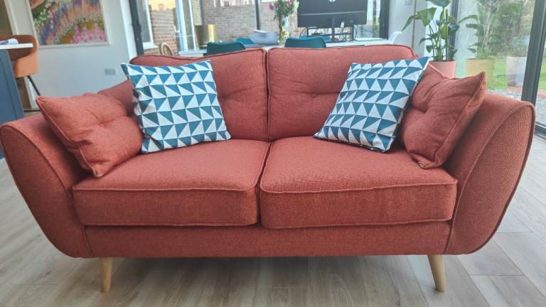 Posting for under a month2 seater DFS Zinc orange sofa