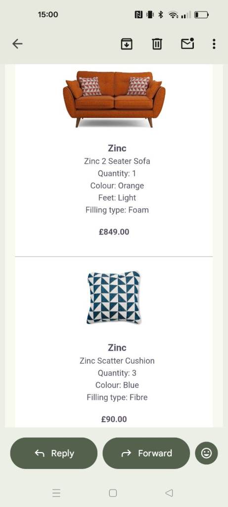 Only 4 months old! Great sofa just not right colour for our space. Comes with 2 blue pattern scatter cushions