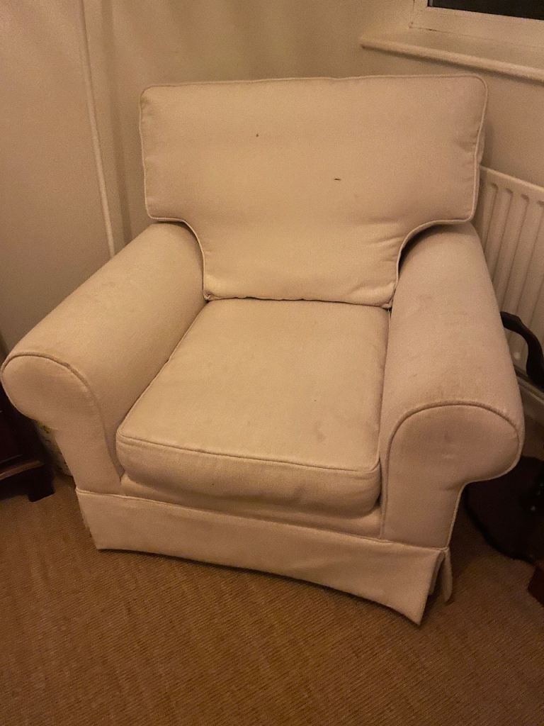 In good condition. Small rip on the outside of one arm as shown in the pictures. Can be easily fixed.