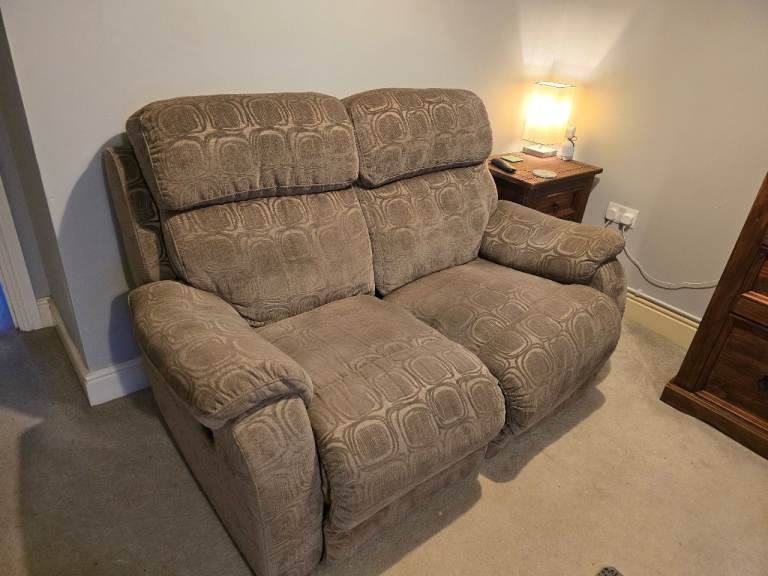 2 Seater recliner sofa originally from DFS. Excellent condition from pet and smoke free home. Both sides are electric recliners. Only selling due to change of colour scheme in the lounge, they are well padded and comfortable to sit on.