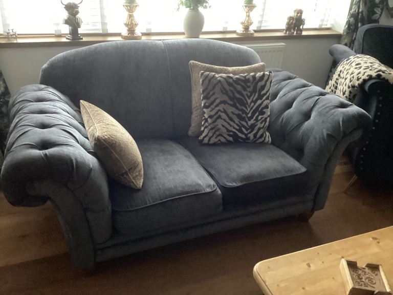 2 seater sofa vgc good as new , no marks & pet free , feather filled cushions so very comfy dark grey