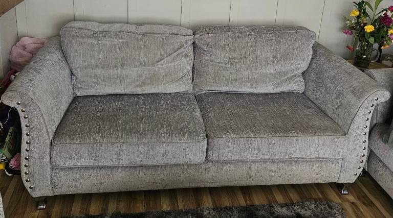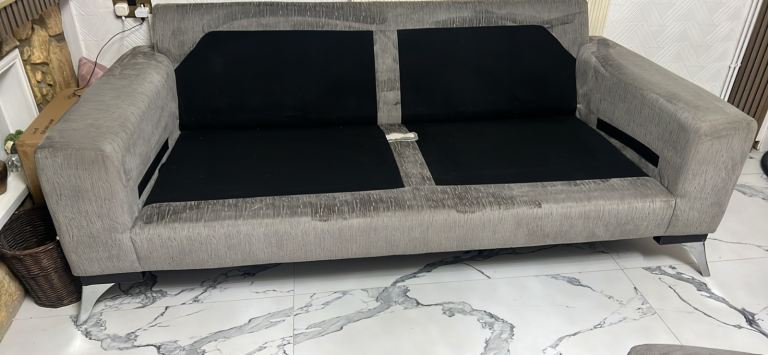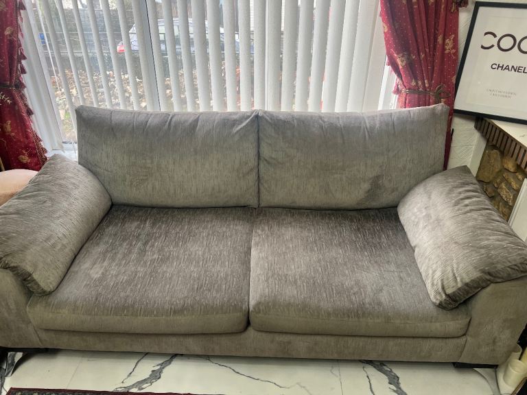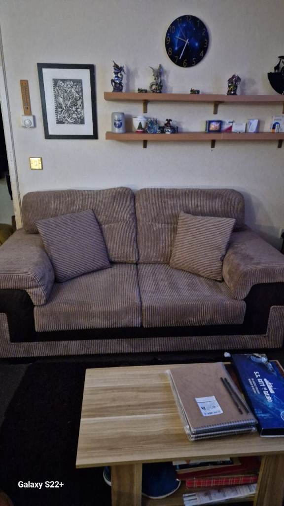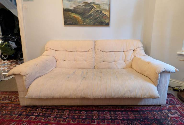 Beige sofa. Good condition. 2 scatter cushions included. Collect Purton.
