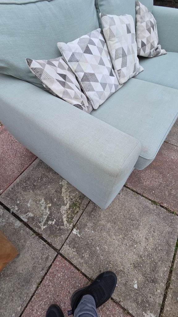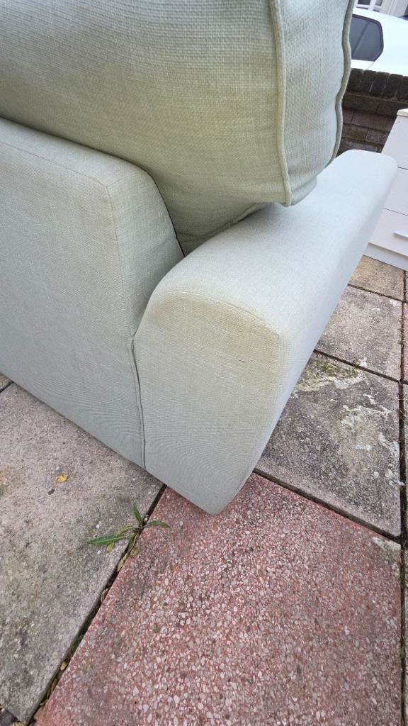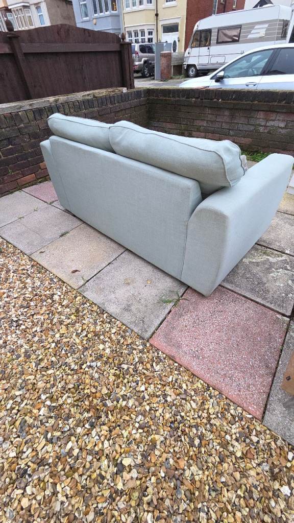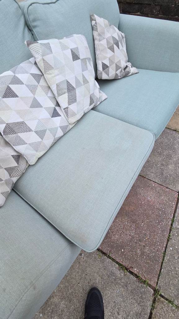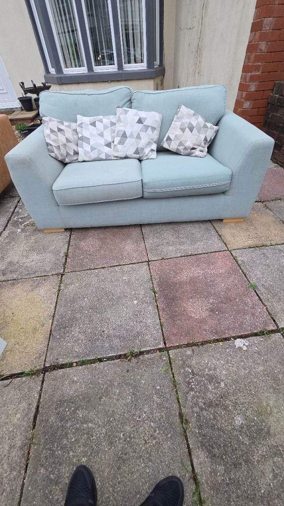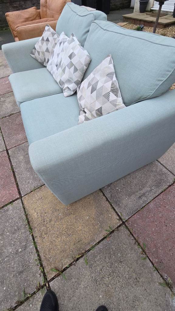 2 seater pale green fabric sofa gd condition comfy needs a clean in places but will come up nice with cushions