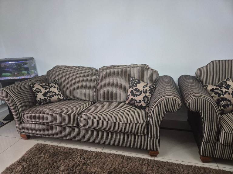 2 three seater sofa's brought from sofolgy excellent condition only 2years old Black and gold chesterfield style.