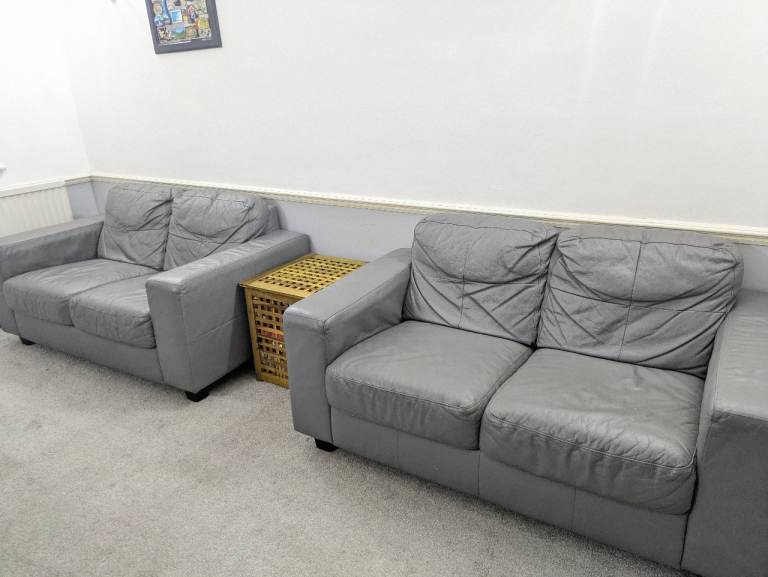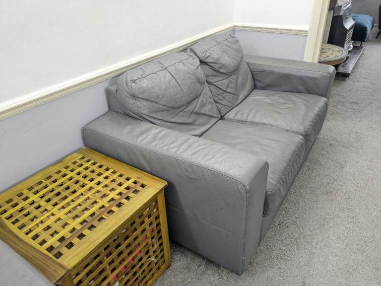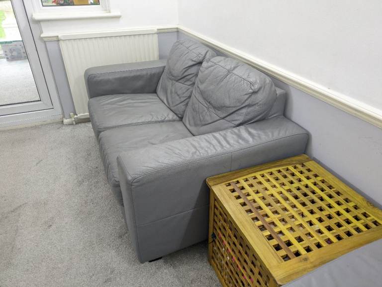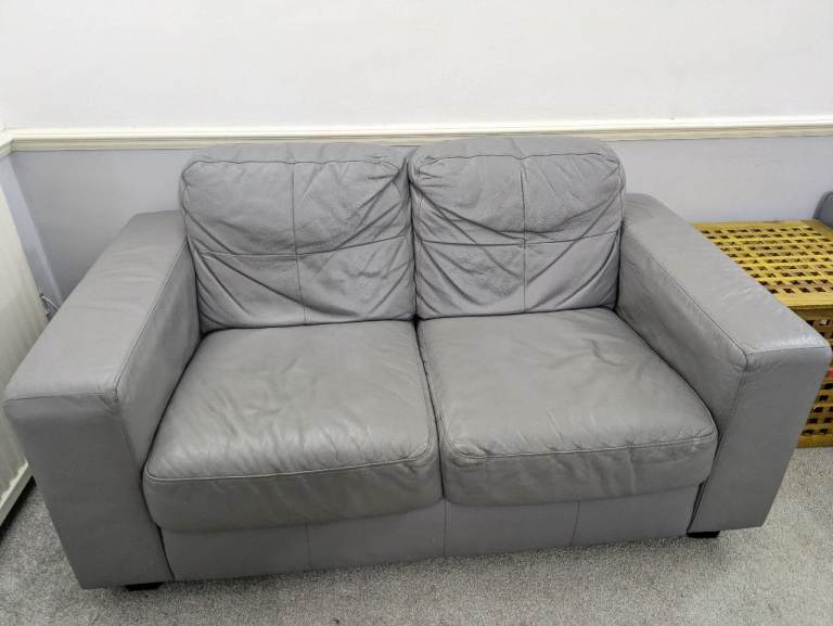 2 X Ikea Grey Leather 2 Seater Sofa Great Condition