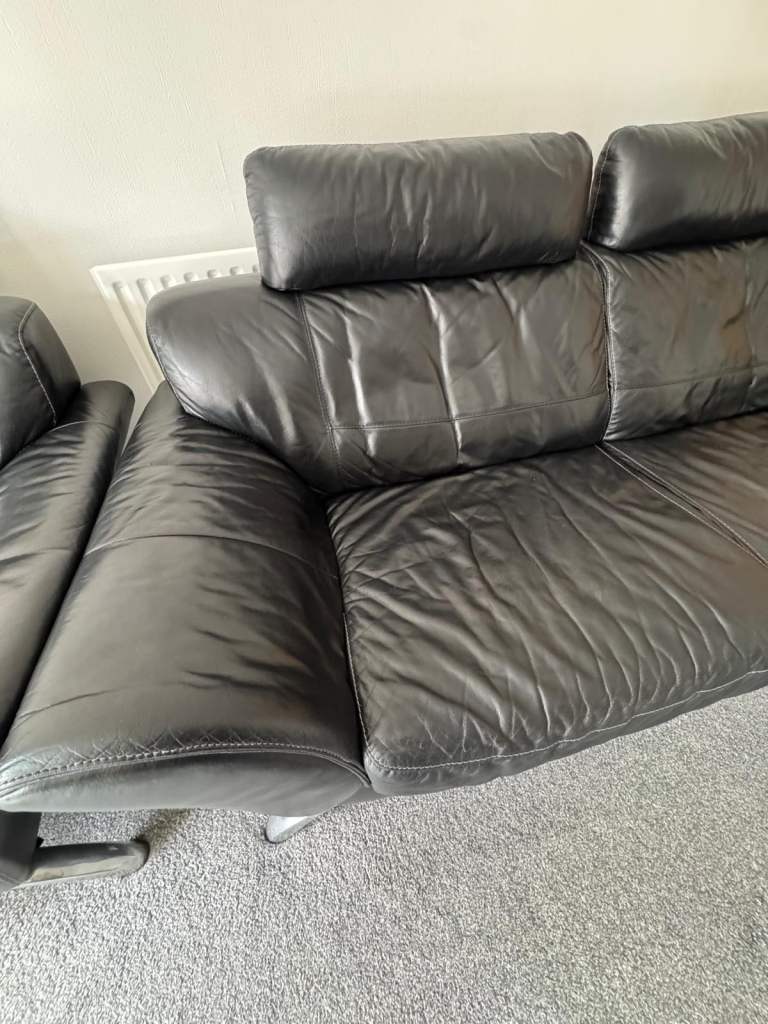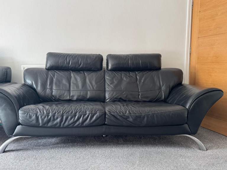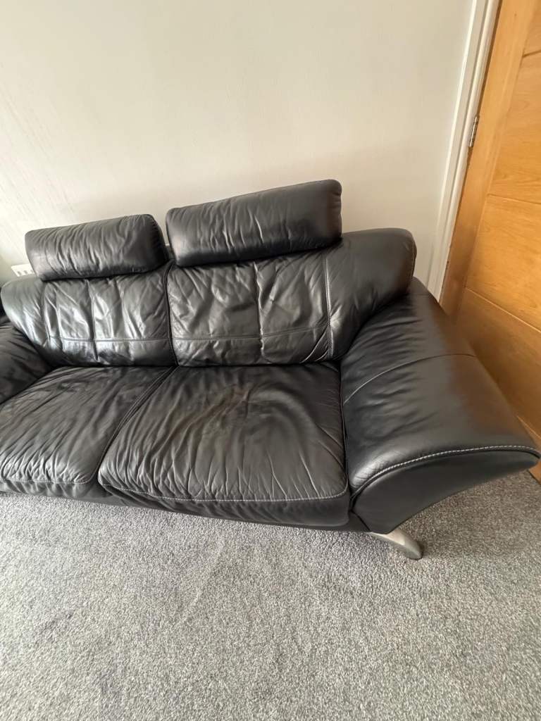 Posting for 4+ years2x black leather sofas