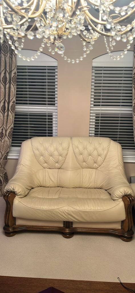 Beautiful 3 seater, 2 seater, chair and pouffee