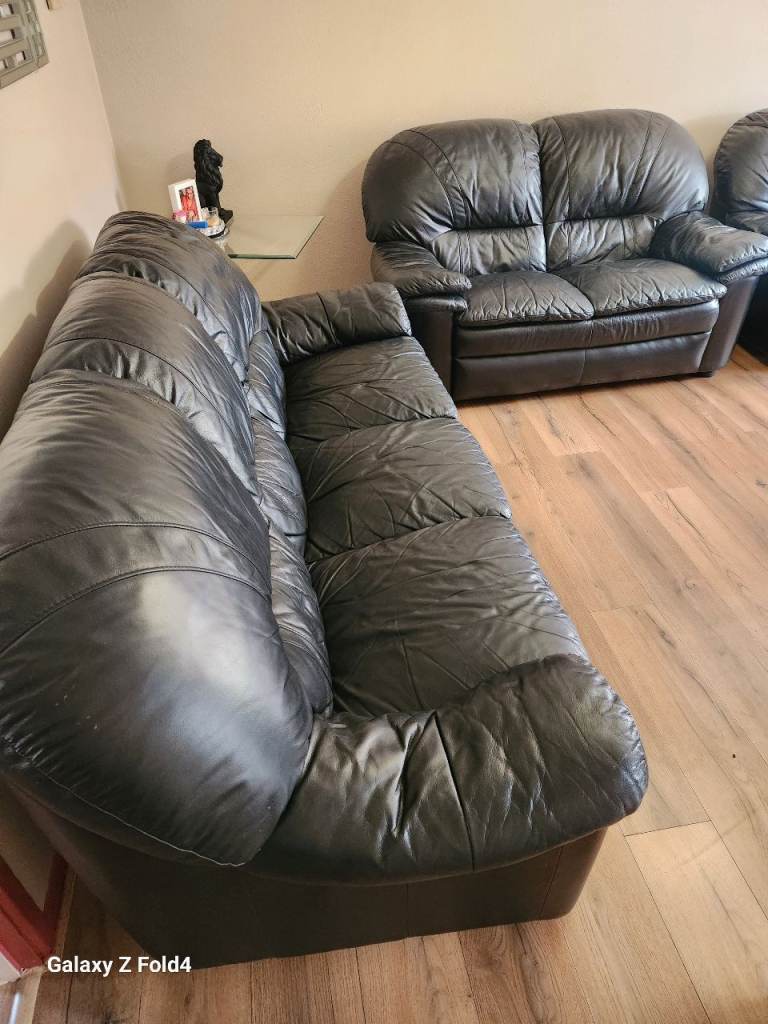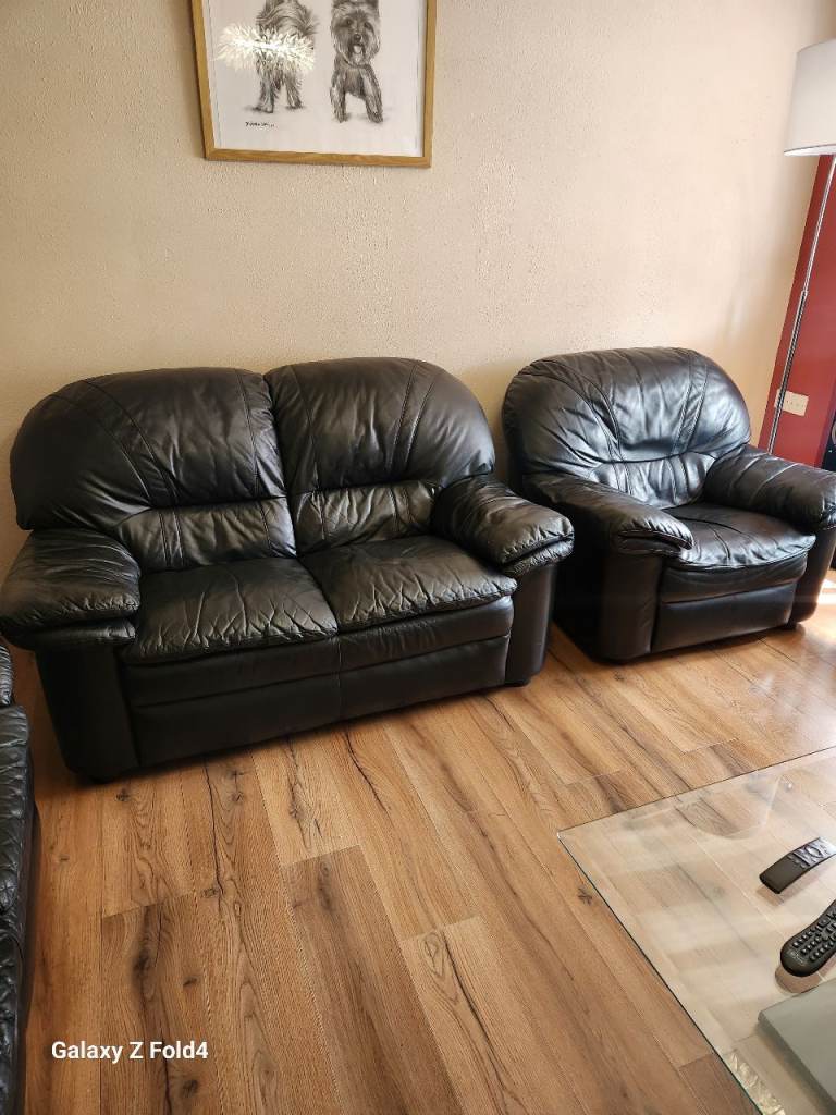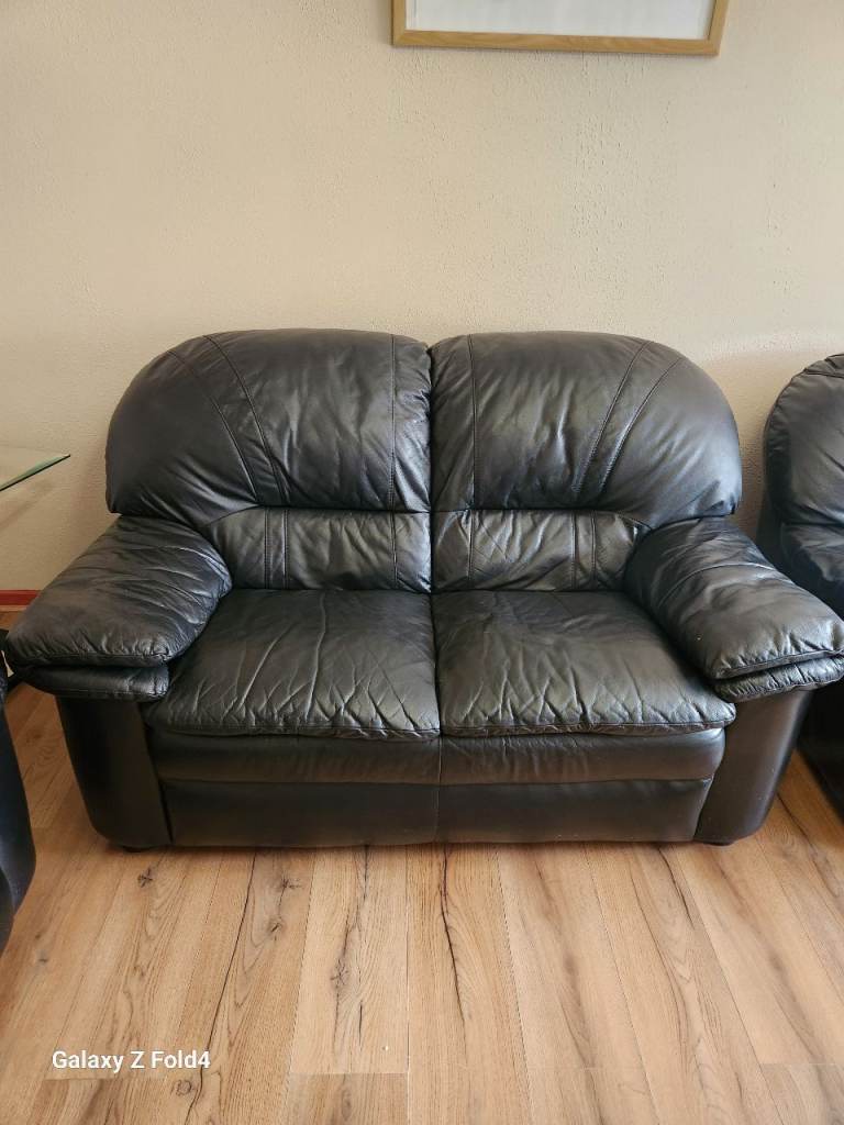 Stylish 3 2 1 black leather sofa suite for sale. In good condition .