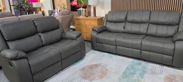 3+2 Dark grey leather Recliner Sofa suite set