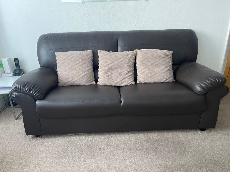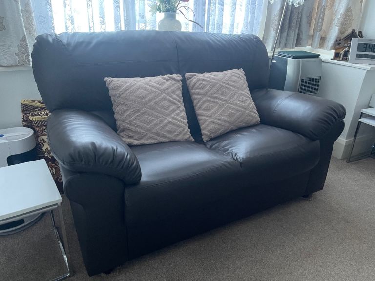 Posting for 8+ years3+2 Real Leather Dark Brown Sofas