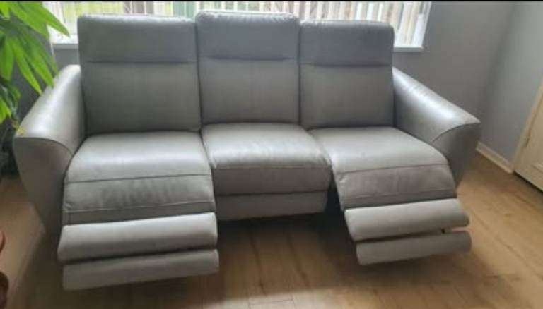3 & 2 Seater Grey Recliner Sofas + Footstool | VERY Comfy, Slightly Flawed (Read Description!)