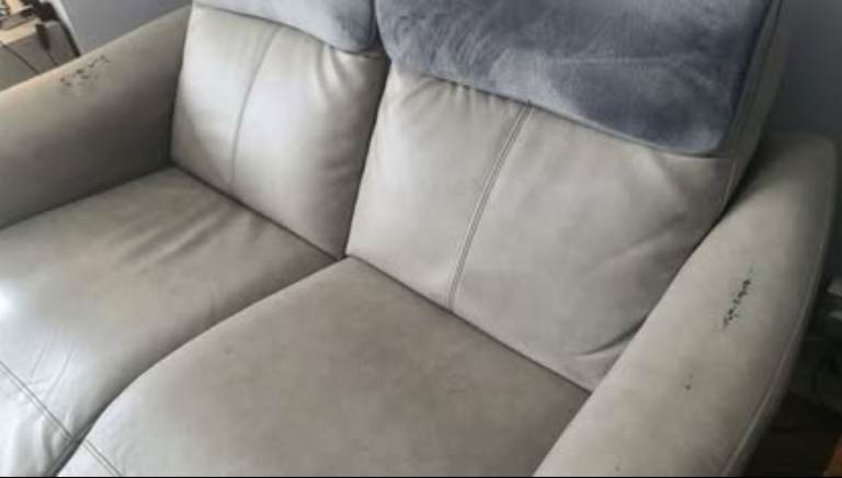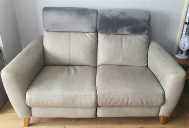 Let’s get the honest bit out of the way first: these sofas have *character*. Bought from Oak Furniture Land 6 years ago, they are incredibly comfortable, but as sofa retailers conveniently forget to tell you, PU leather eventually reacts to body oils and starts to peel in high-wear areas.