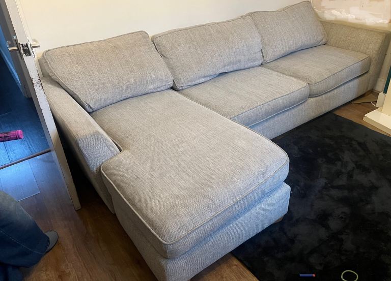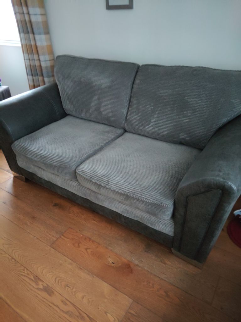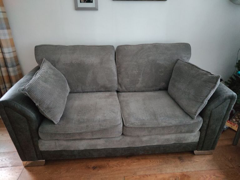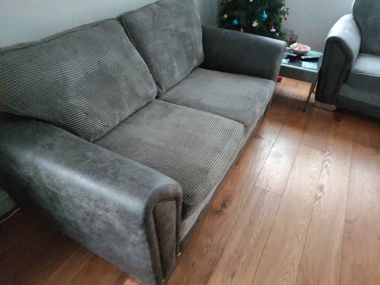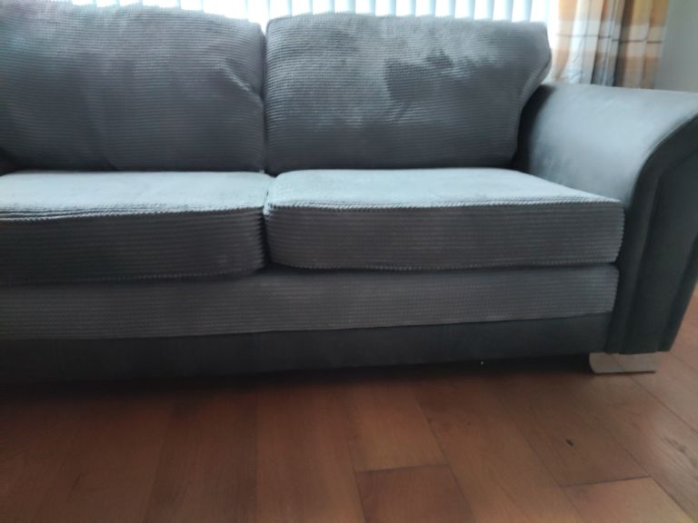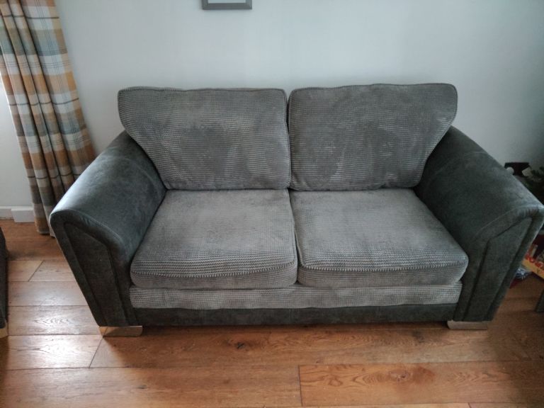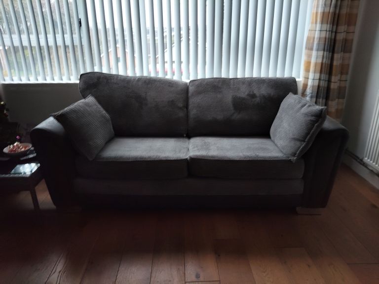 3 / 2 Sofas, Charcoal in colour, are in immaculate condition with trim chrome feet