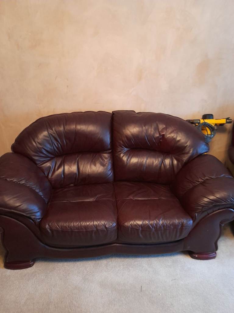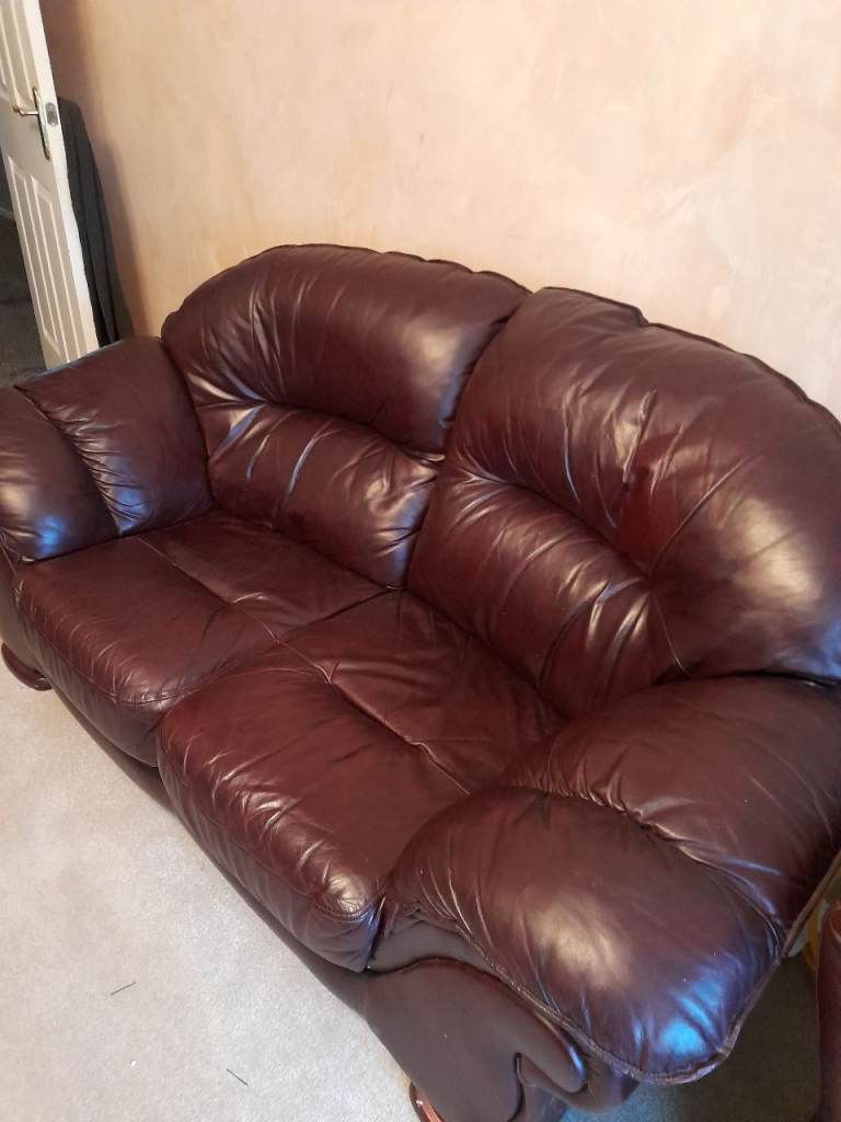 Quality 3 & 2 Seater Real Leather burgundy sofas. Both sofas are in superb condition, no sagging cushions, soft leather and very comfortable. From smoke and pet free home. £250 for both sofas. Pictures don't do sofas justice.