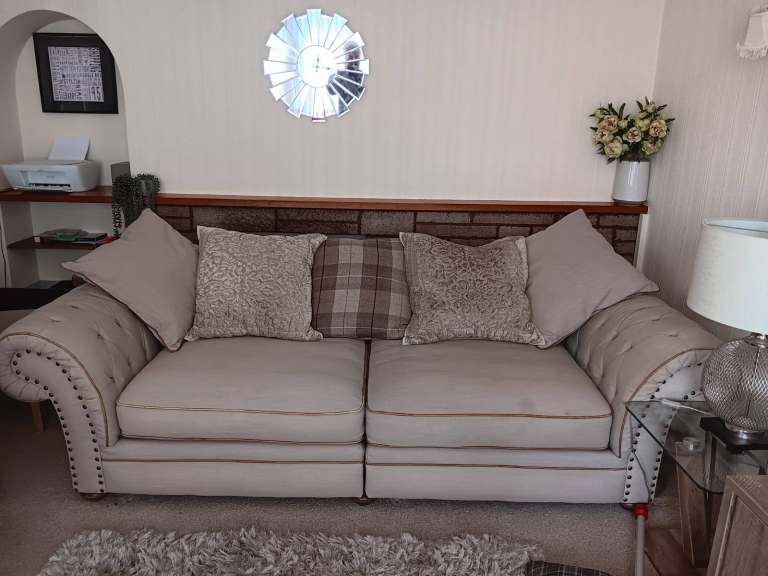 Sofas are all in excellent condition and come from a smoke and pet free home. Cushions are machine washable - which has just been done ready for the new owner. These do come apart but are big and heavy so will require two people to move. Collection only from Prestwick. This set was bought originally for about £3k.
