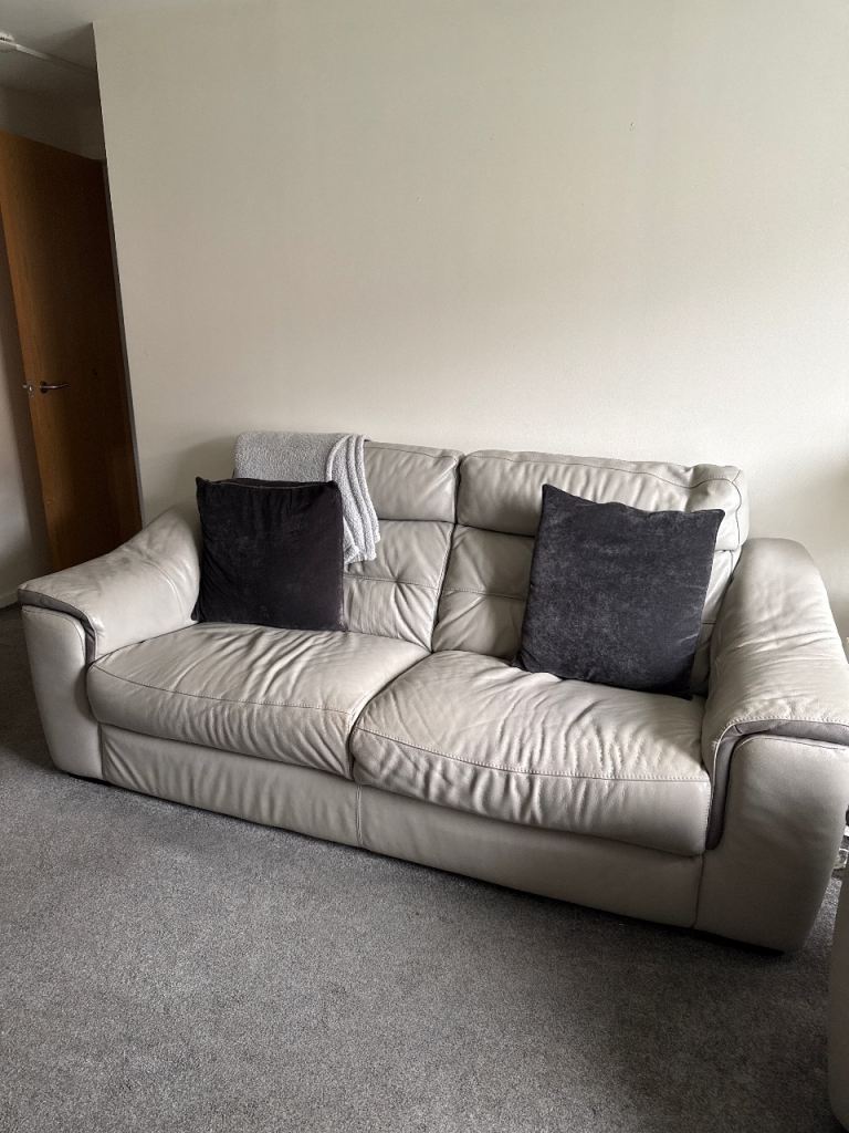 3 piece suite, 1 single electric recliner, 1 Two seater sofa and one large 2 seater sofa, grey in colour. FREE whoever wants must pick the suite up themselves.