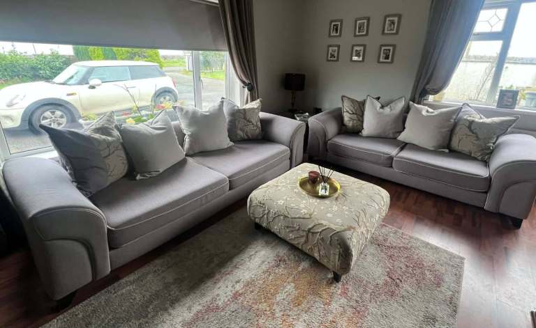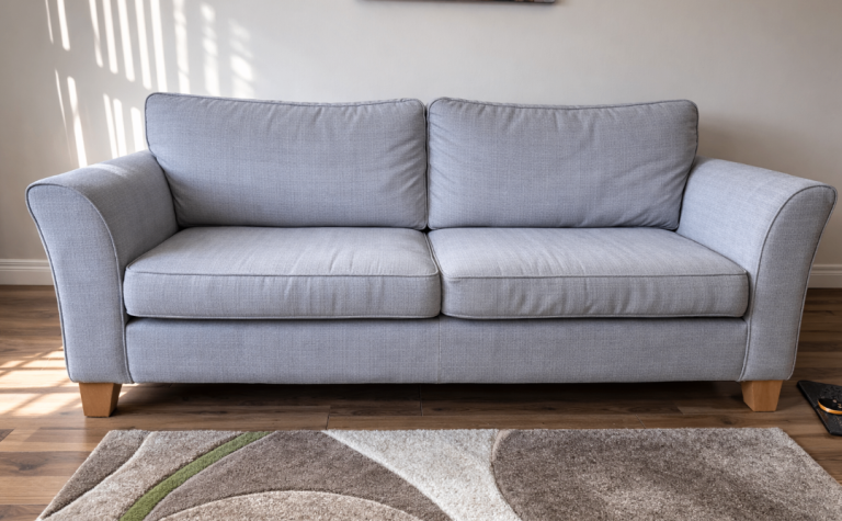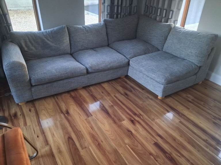 This Jack Wills Sofa is inspired by British mid-century design. This sofa has a stylish frame with tapered legs. It is blue velvet and very comfortable.