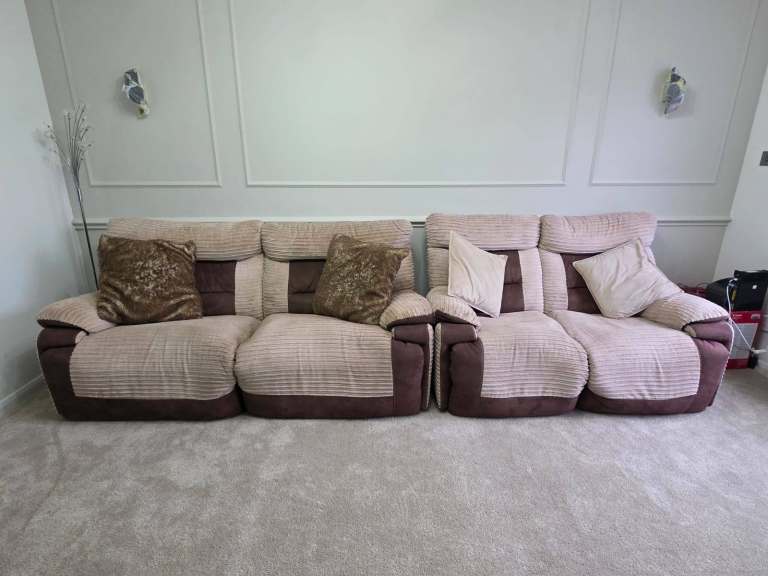 3 Seater +2 Seater Sofa Faux Fur Recliner Sofa's For Sale , Pet Free , Smoke Free Home !