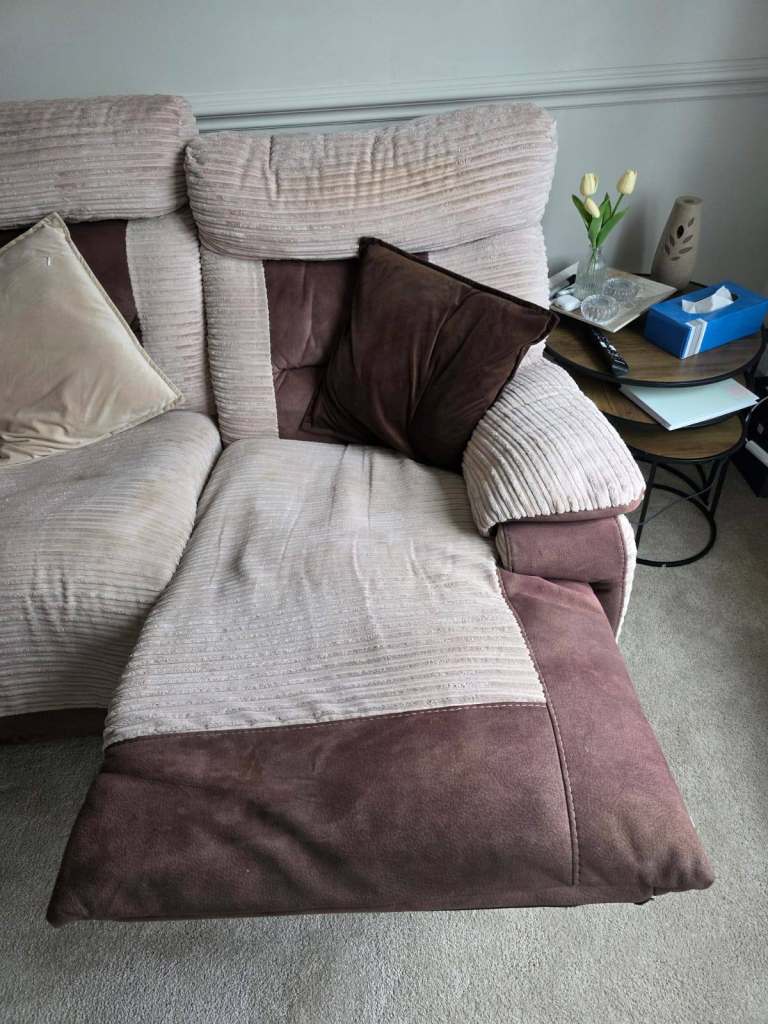 SCS Sofa Set , 3 Seater & 2 Seater Faux Fur Recliner Sofa's Set For Sale, Pet Free , Smoke Free Home