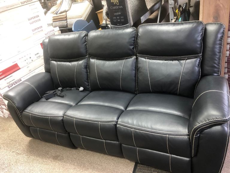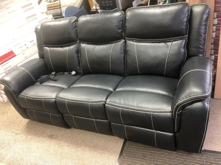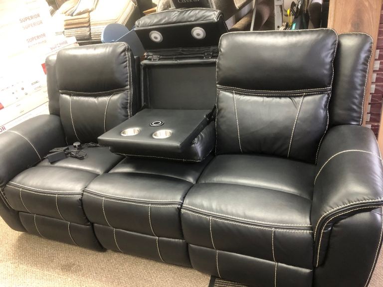 Brand new 3 seater sofa black brand new just out wrapper never sat on two electric recliners speakers blue tooth cold cup holders sell at half price