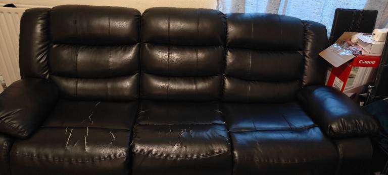 First picture is Cream, a Right hand corner sofa and selling it for just 340 pounds. Black is 3 seater selling it for 100 and Blue is a 3 seater selling it for 200 pounds. Cream sofa is brand new not been used. The company i bought it from delivered the wrong colour and sofa. All three sofas need to go ASAP am receiving new sofa next week.