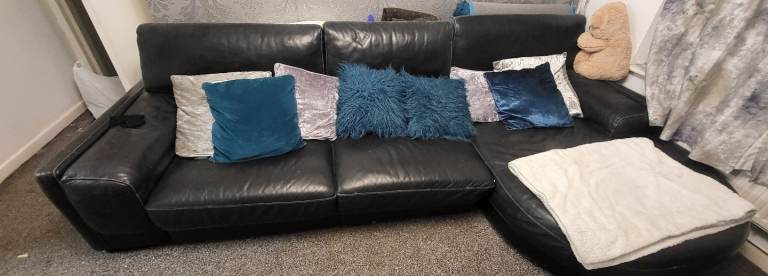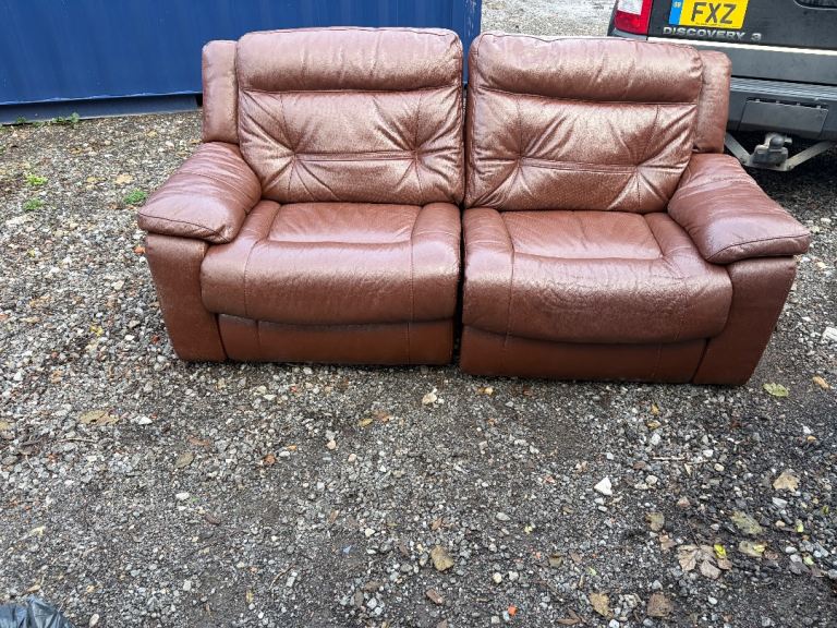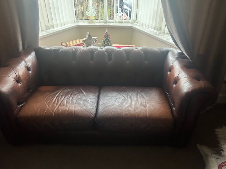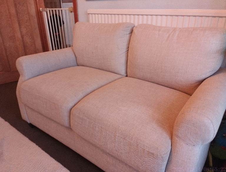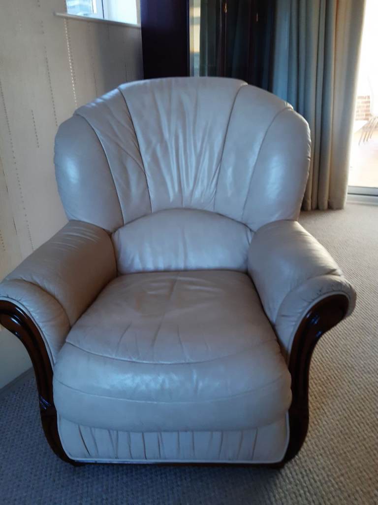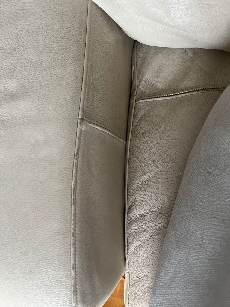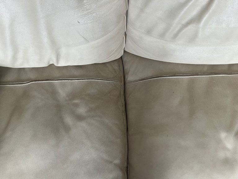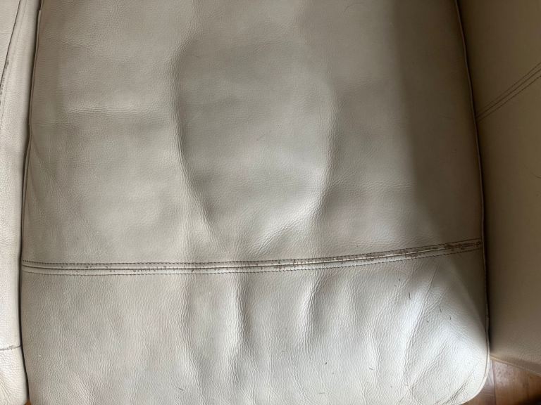 Selling two comfortable cream leather sofas. Both in good overall condition and very comfortable to sit on. There are some stains underneath the cushions that could use a clean, but they’re not visible when the cushions are in place .