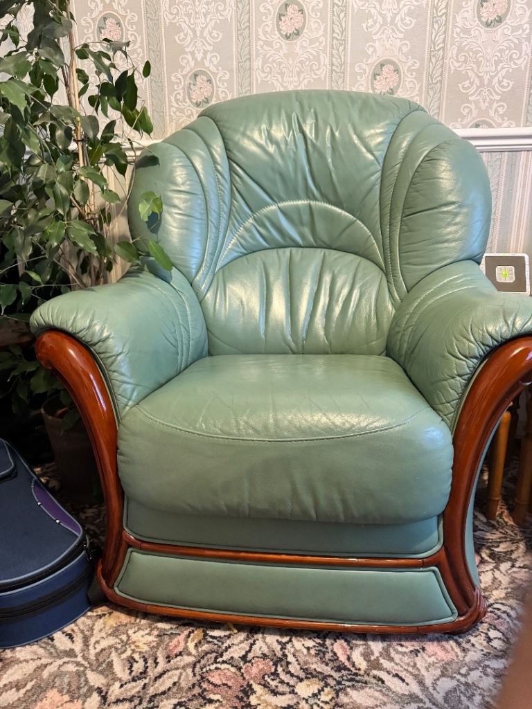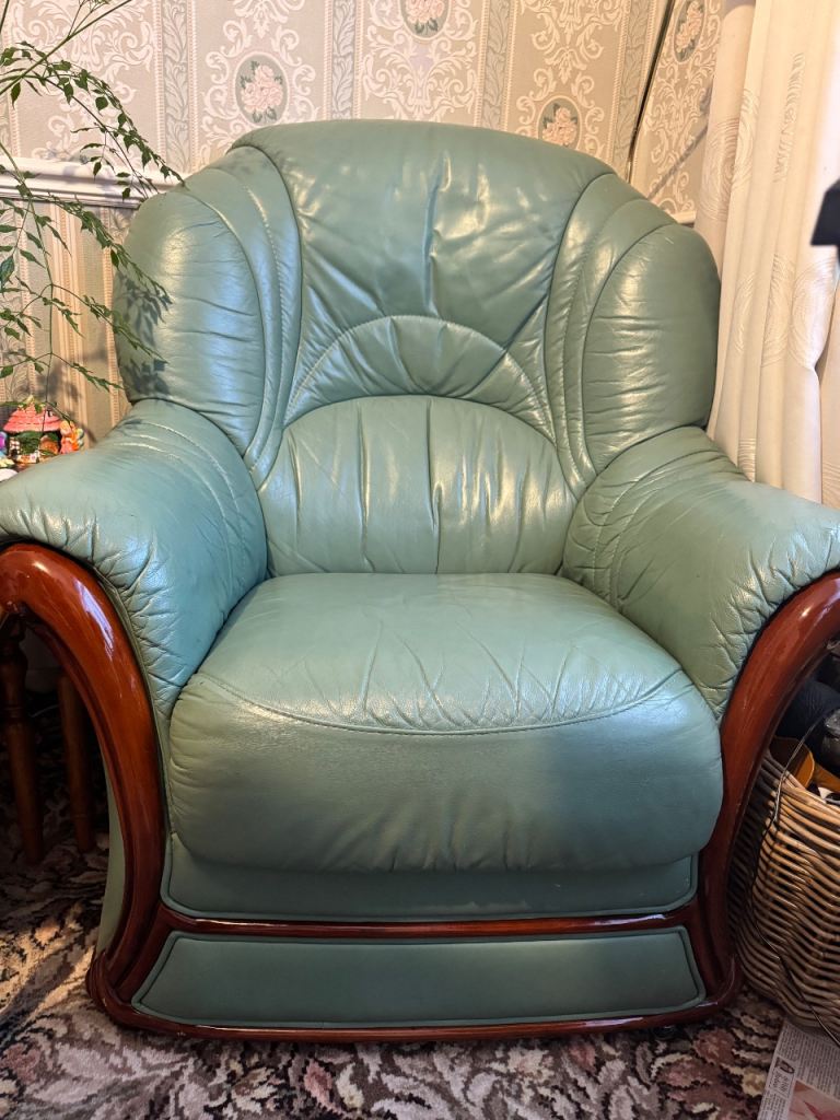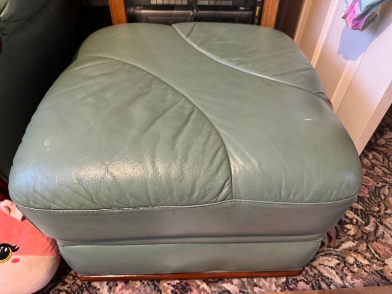Arighi Bianchi 3 seat leather sofa and 2 armchairs, robust quality. Comes with footstool.