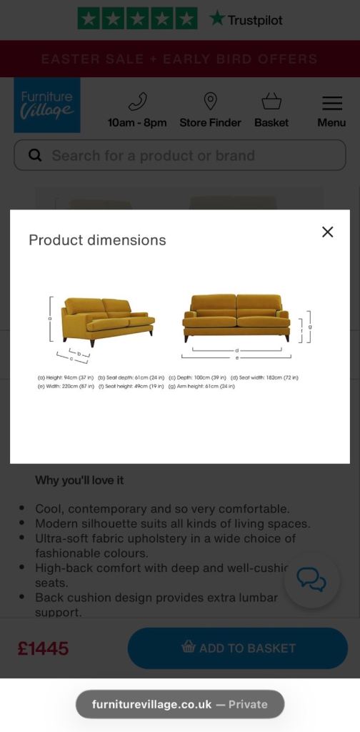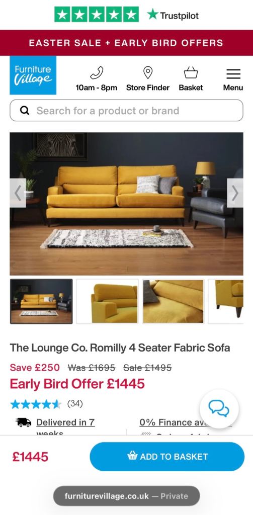 4 SEATER FABRIC SOFA -THE LOUNGE CO. ROMILLY - FURNITURE VILLAGE