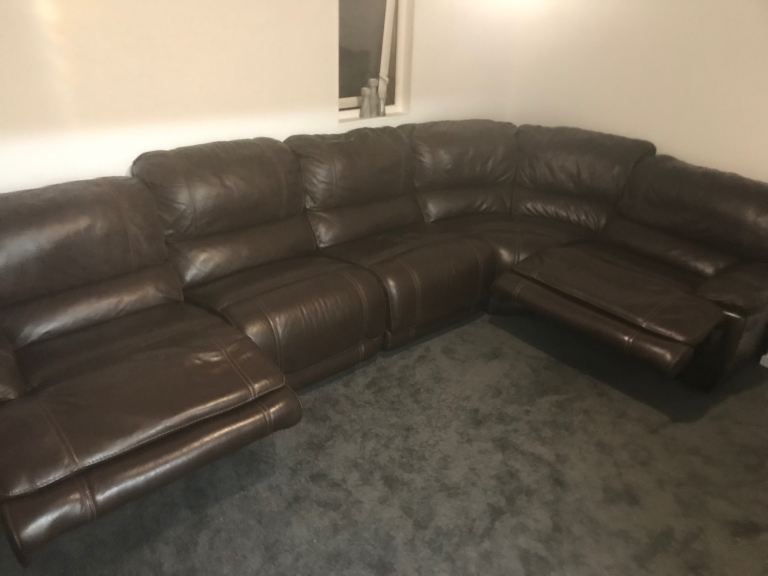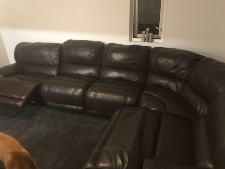 Posting for under a month5x seater 2x recliner 1x corner piece brown leather couch