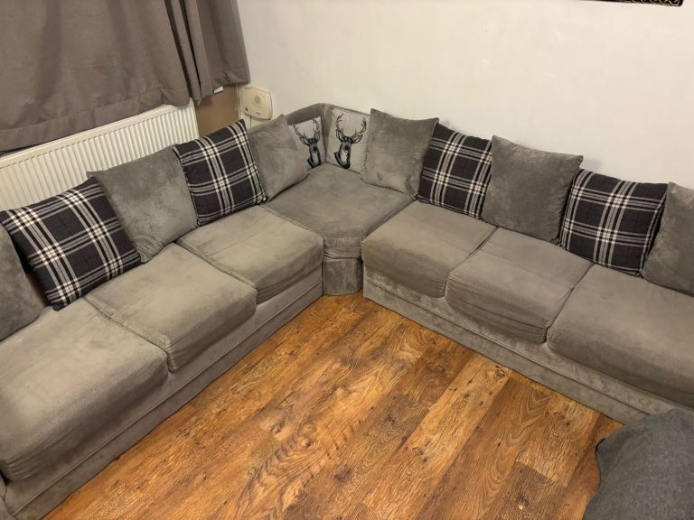 7 Seater Sofa Silver/Grey (Good Condition)