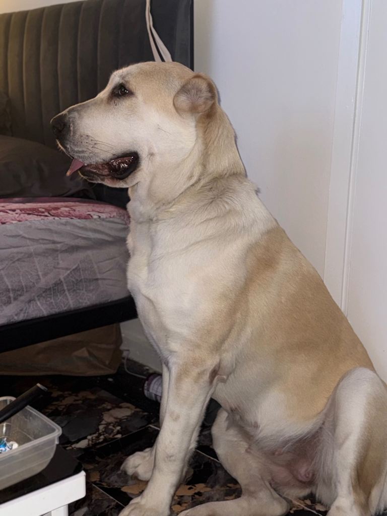 She’s 15 months old big huge dog I didn’t think it was going to get this big and I found out she’s ganna get twice the size so I’m selling her she fully house train