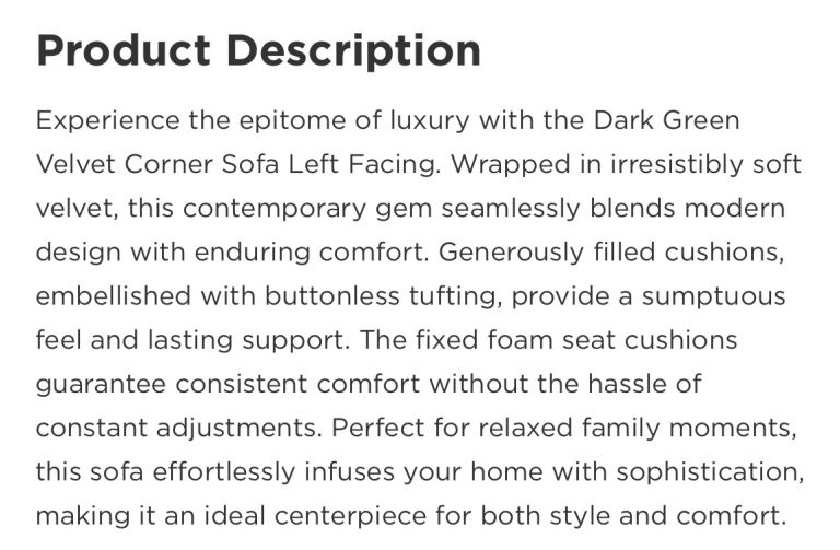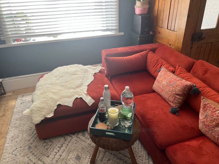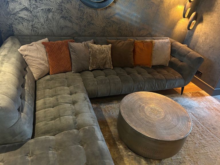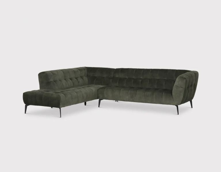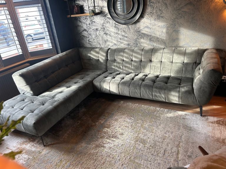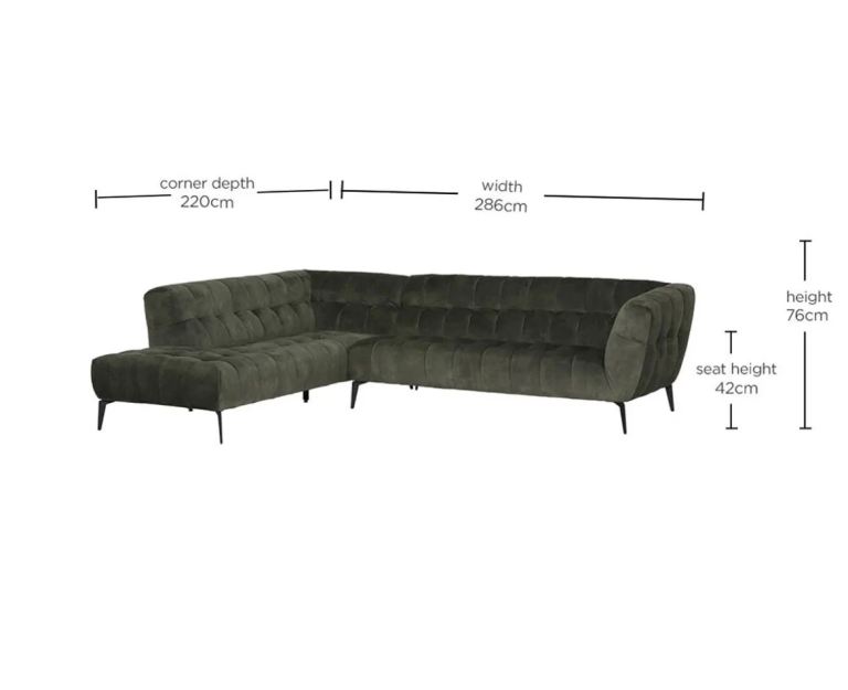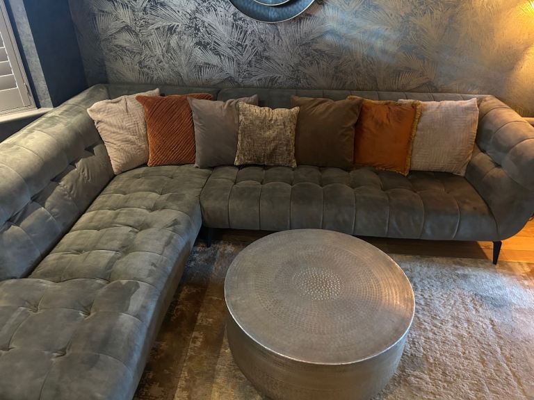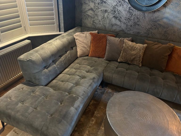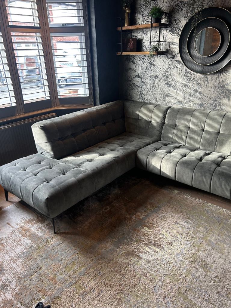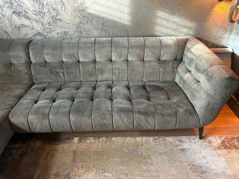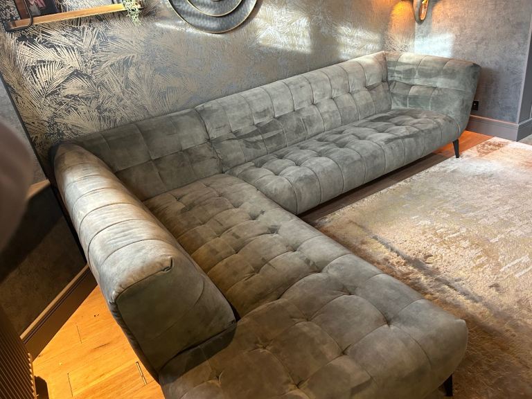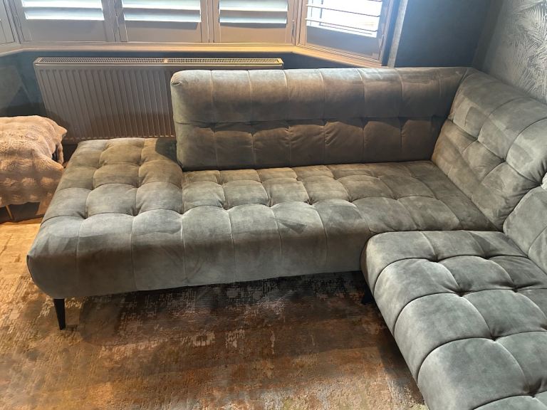 Posting for 7+ yearsAzalea dark green (olive) velvet left hand corner sofa