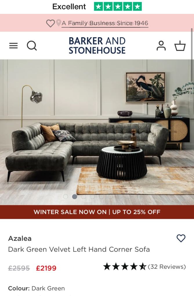 The sofa has 4.81 stars from 32 verified customers as shown on there website so please feel free to see in store or contact me view.