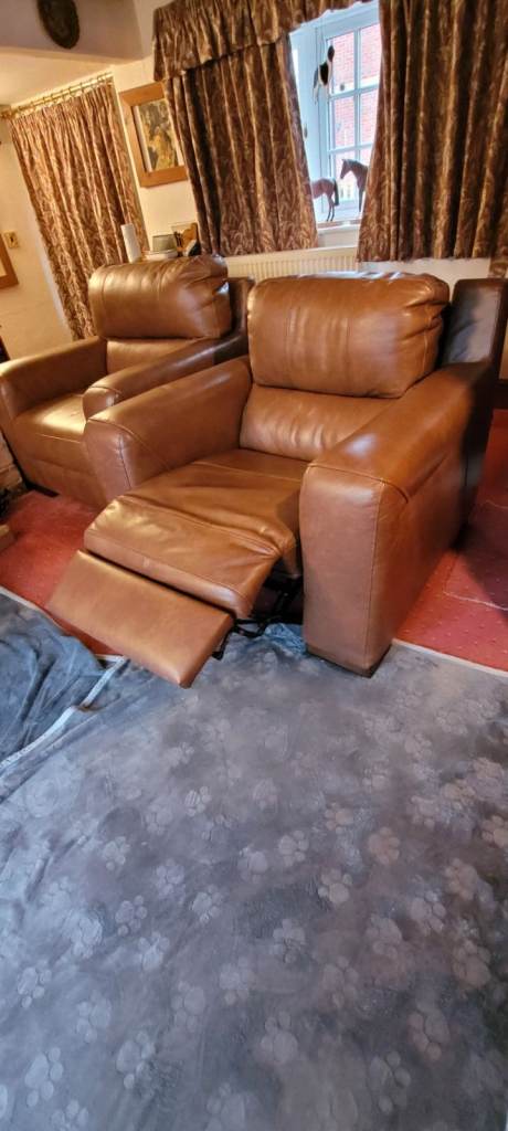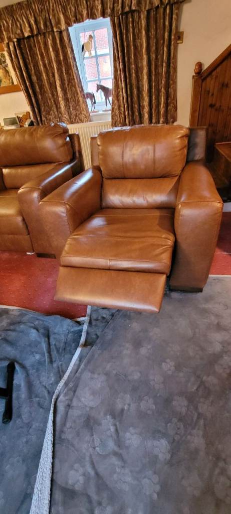 Posting for under a monthBeautiful Italian leather electric reclining chair, matching arm chair and 2 seat sofa.