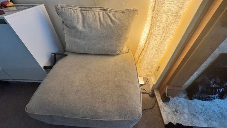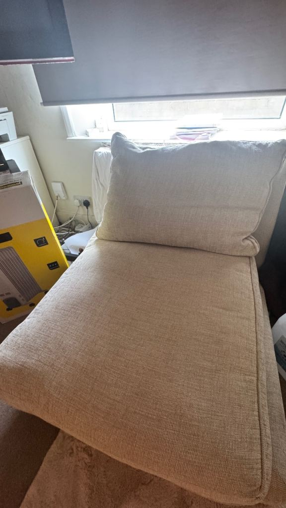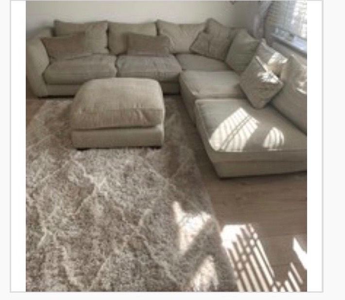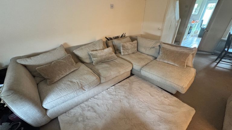 Large ex Sofology beige comfy corner sofas and foot stool.