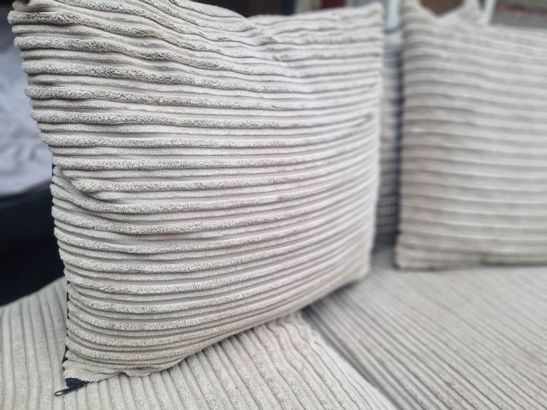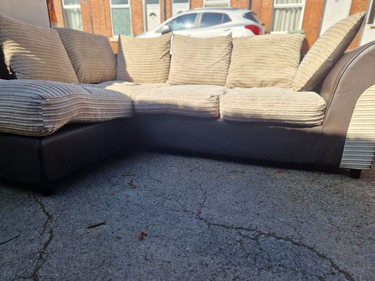 BEIGE CORNER SOFA. LIKE NEW. NO COST HOME DELIVERY