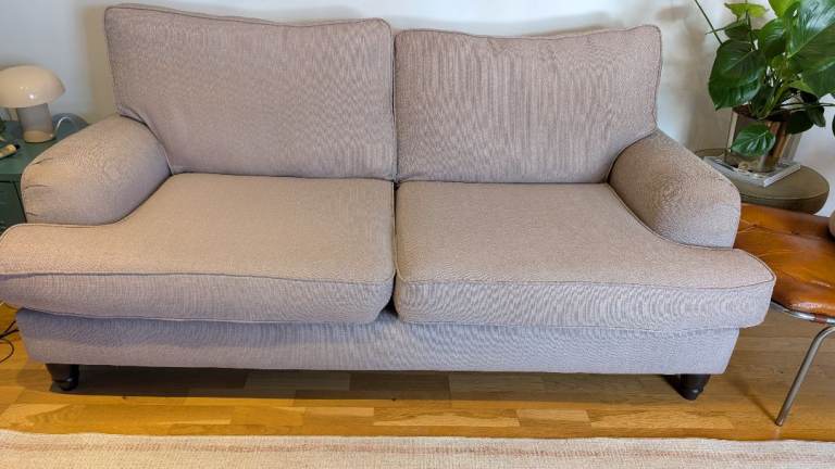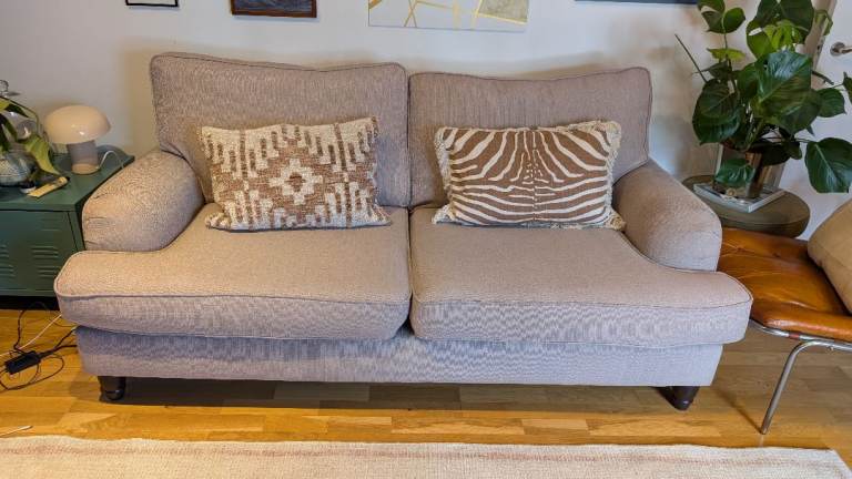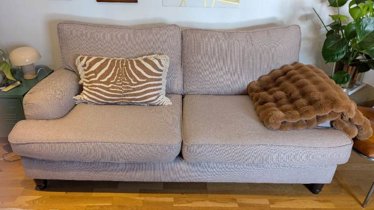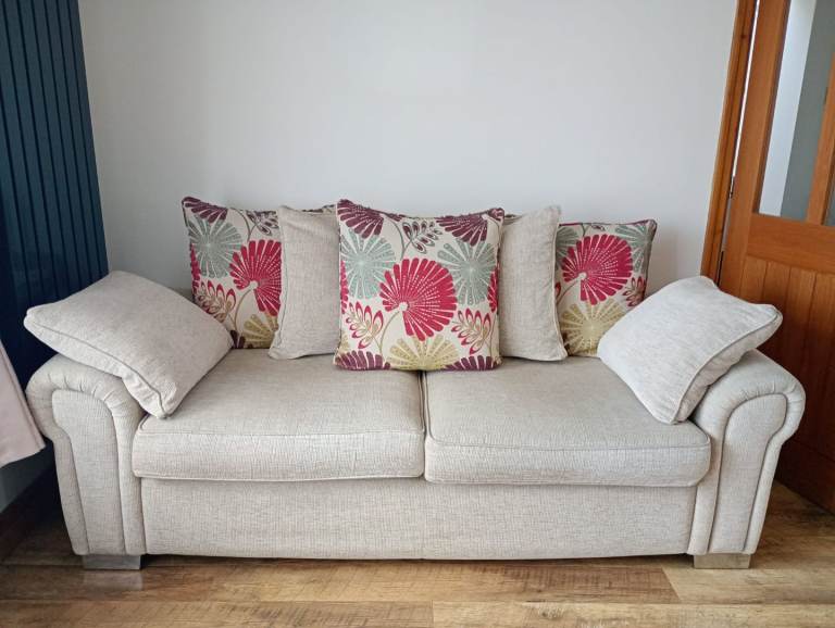 Lovely 3-seater fabric sofa in a beige colour, perfect for a living room or snug.