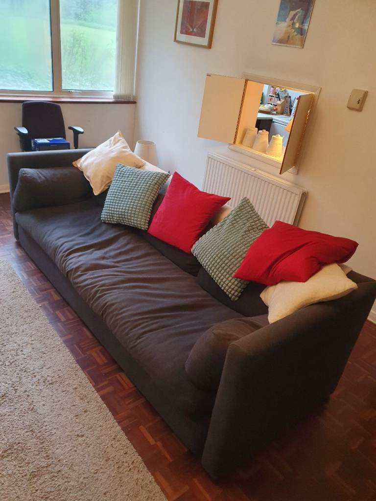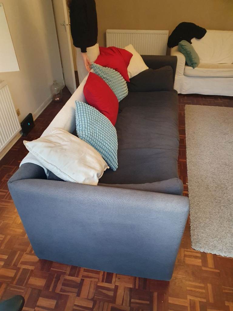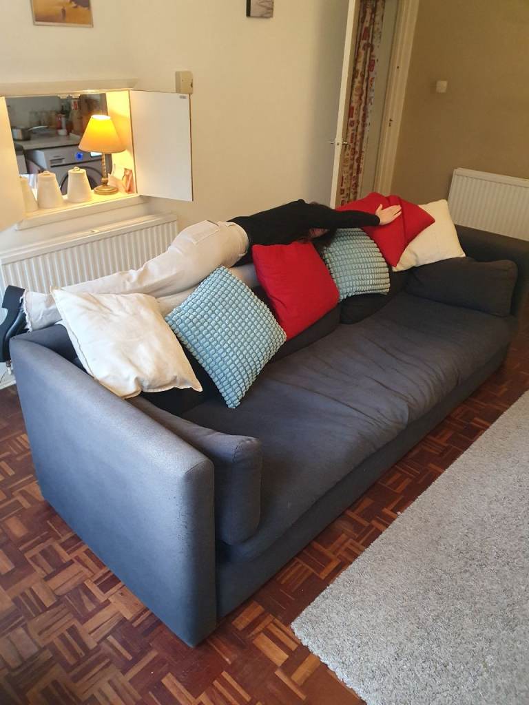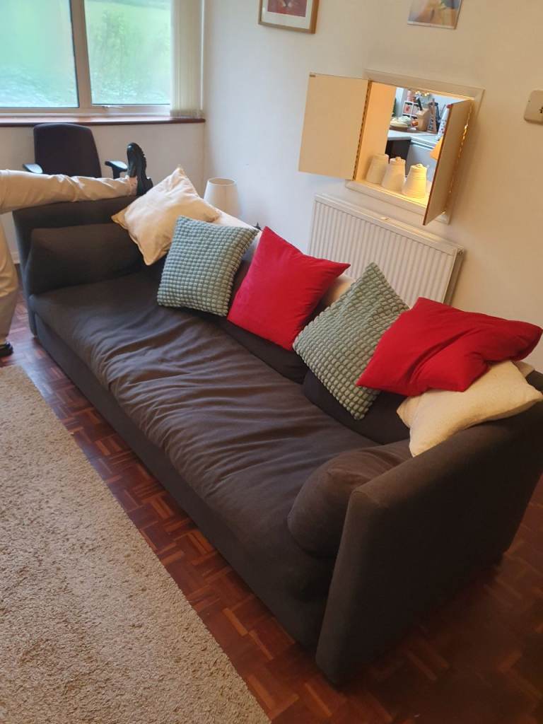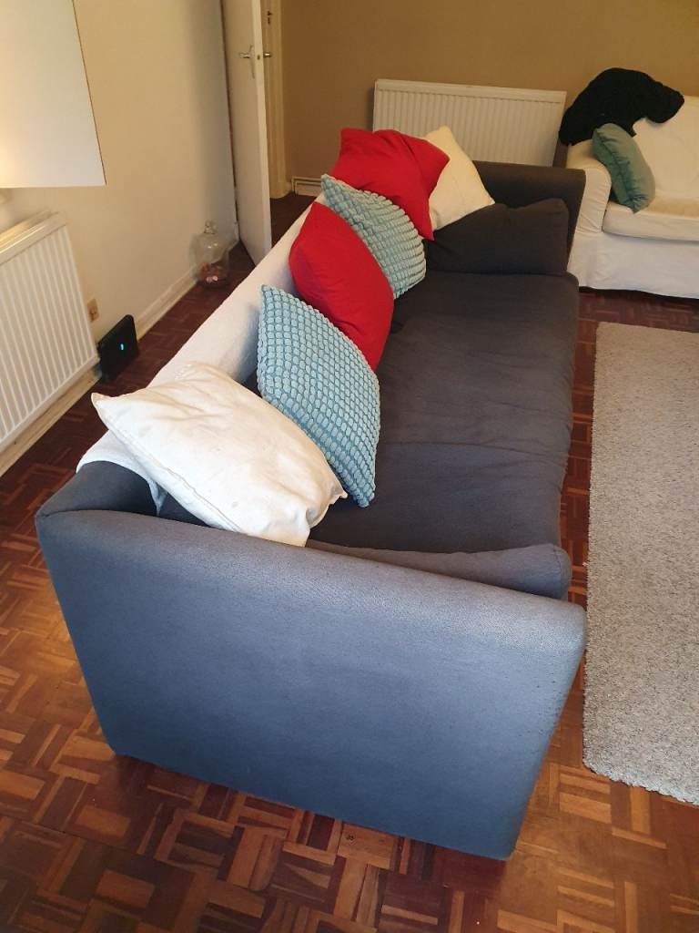 Giving away our beloved sofa as we're moving abroad. Easily takes 4 people or 1 very tall person fully lying down which is great to sleep on for people crashing for the night.