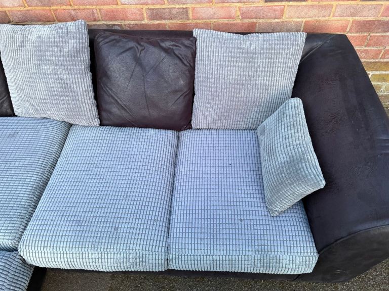 Black and grey fabric corner sofa