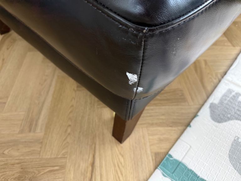 Pretty good condition, some signs of wear, 10+ years old but very comfortable. Small amount of white paint that will be able to come off with a good clean.