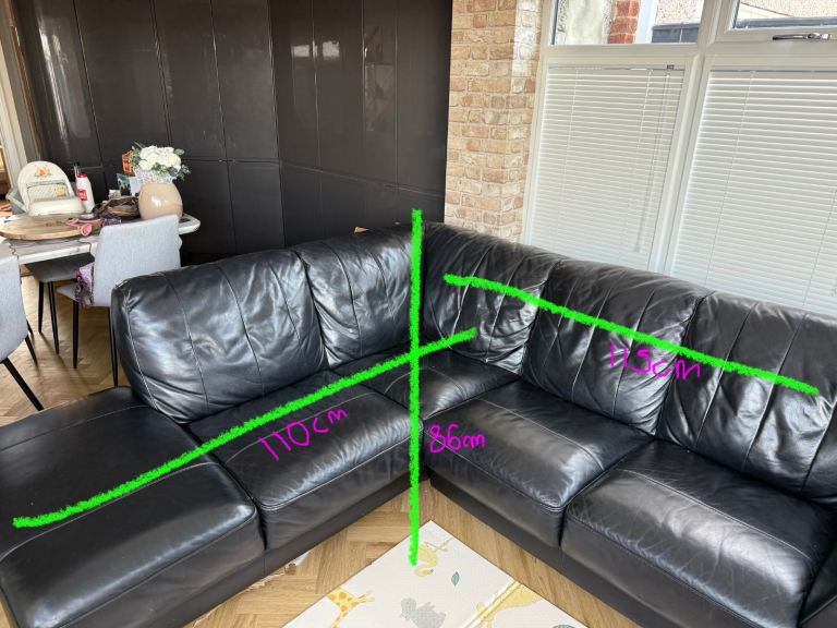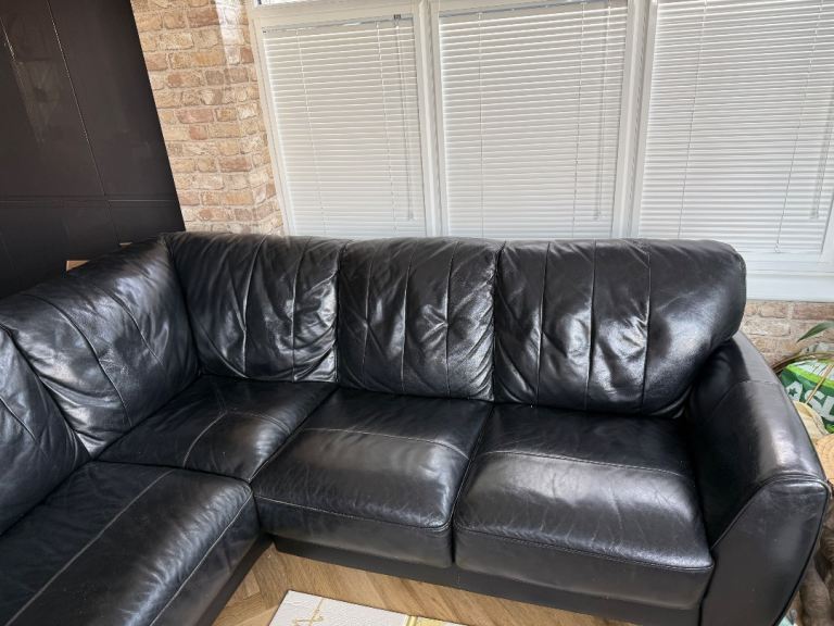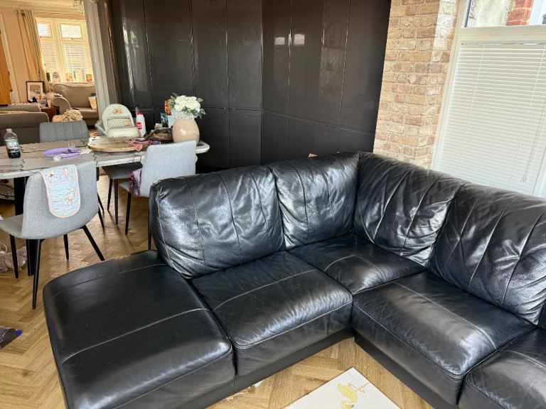 *SOLD* Black Faux Leather Corner Sofa