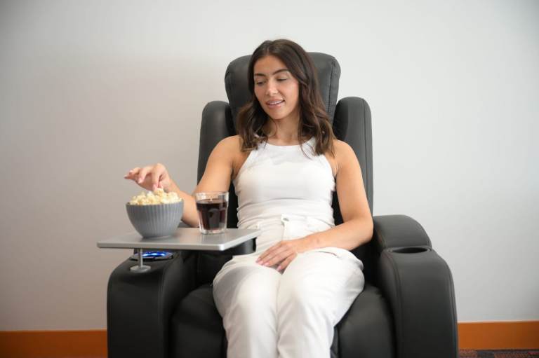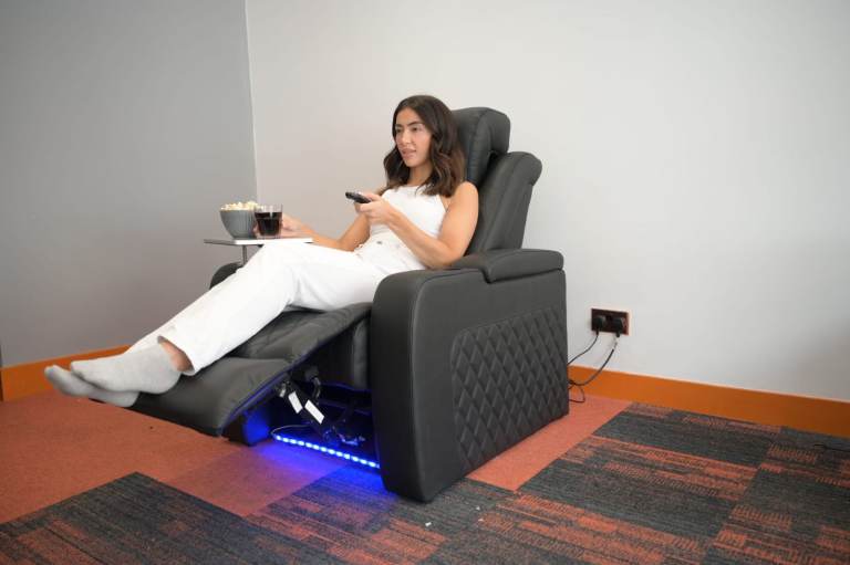 Features built-in Power Adjustable Headrest and Recline, LED lighting, Hidden Arm Storage, Chilled Cup holder, Handy swivel tray for £20 more.