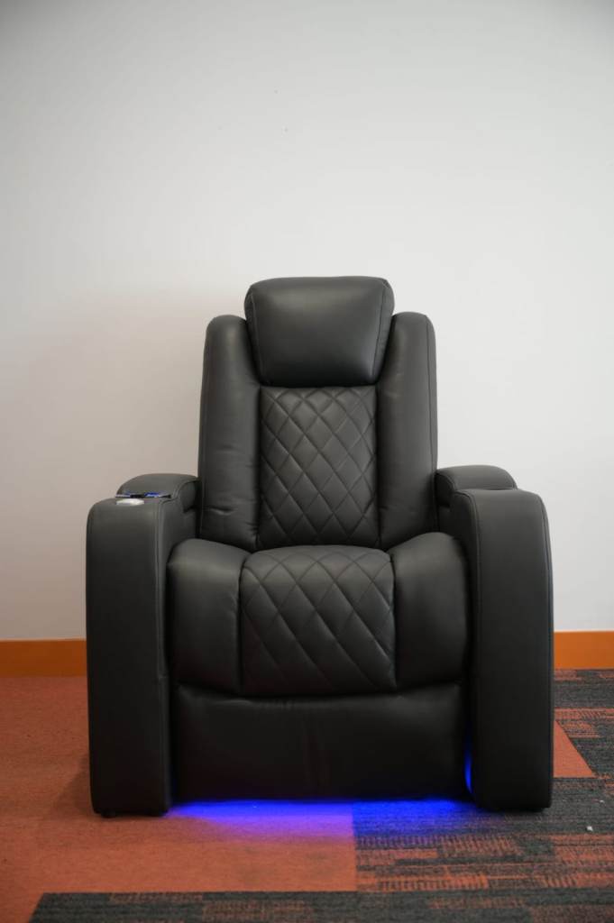 Black Leather Recliner Armchair with LED Lighting and Tray