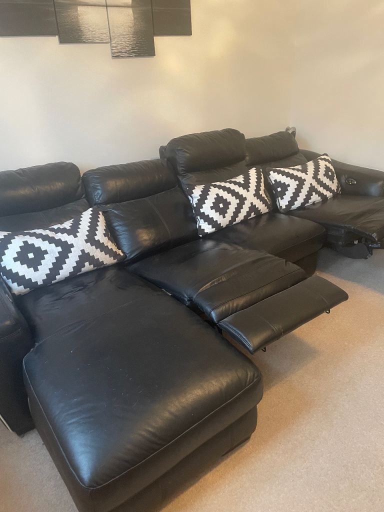 Posting for under a monthBlack Leather reclining sofa