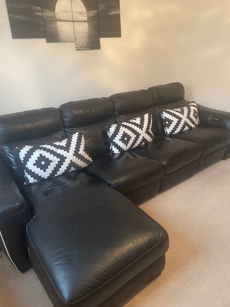 Good size 4 seater Black leather sofa